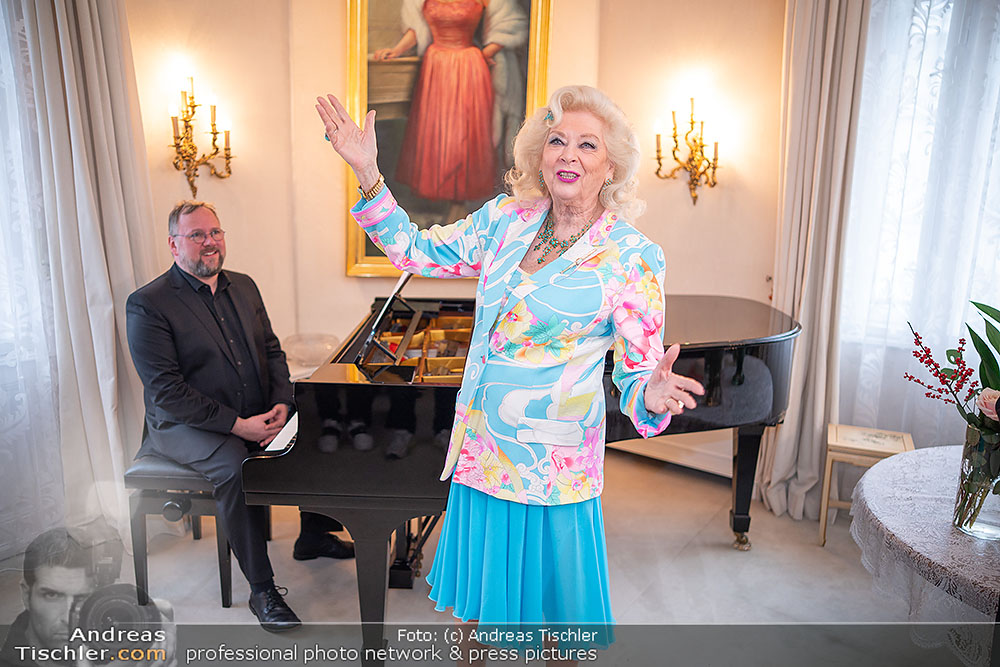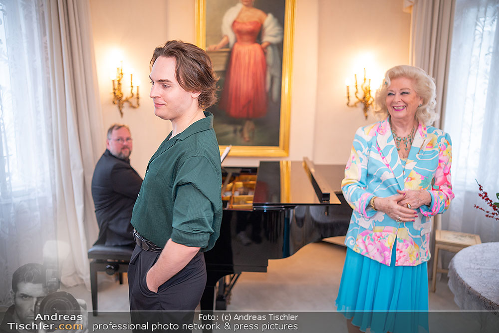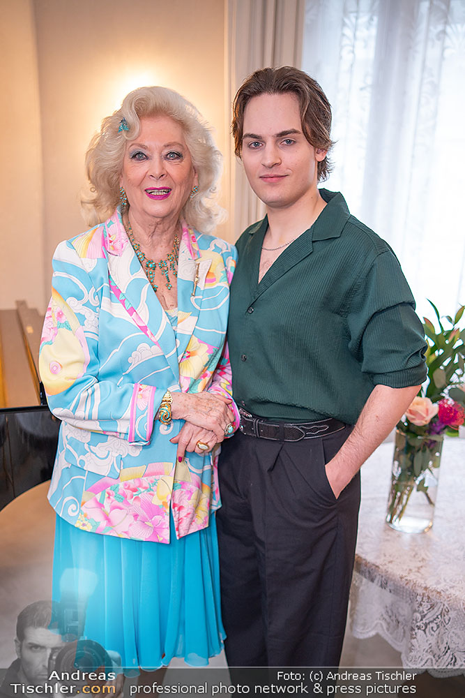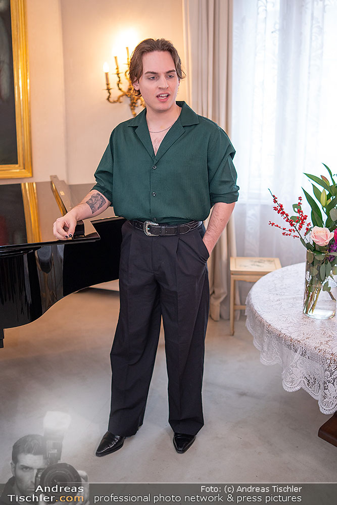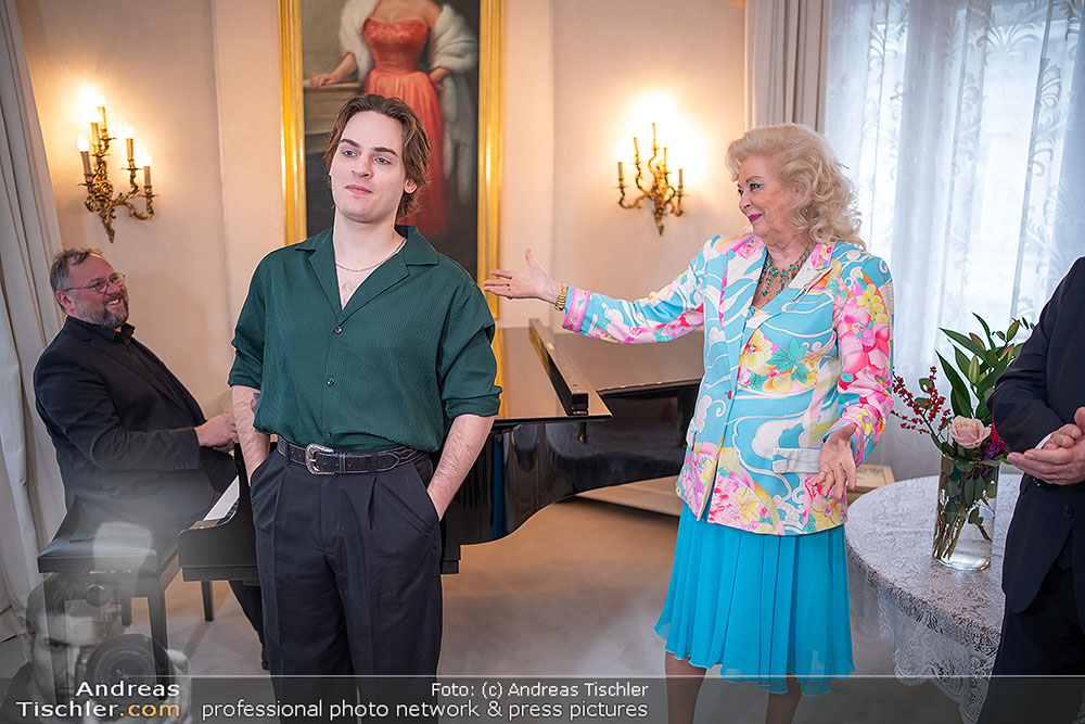 Birgit Sarata präsentierte bei ihr daheim vor versammelten Medien den Stargast des kommenden Zuckerbäckerball 2026 - es ist der ehemalige Falco-Darsteller der VBW, Moritz Mausser.