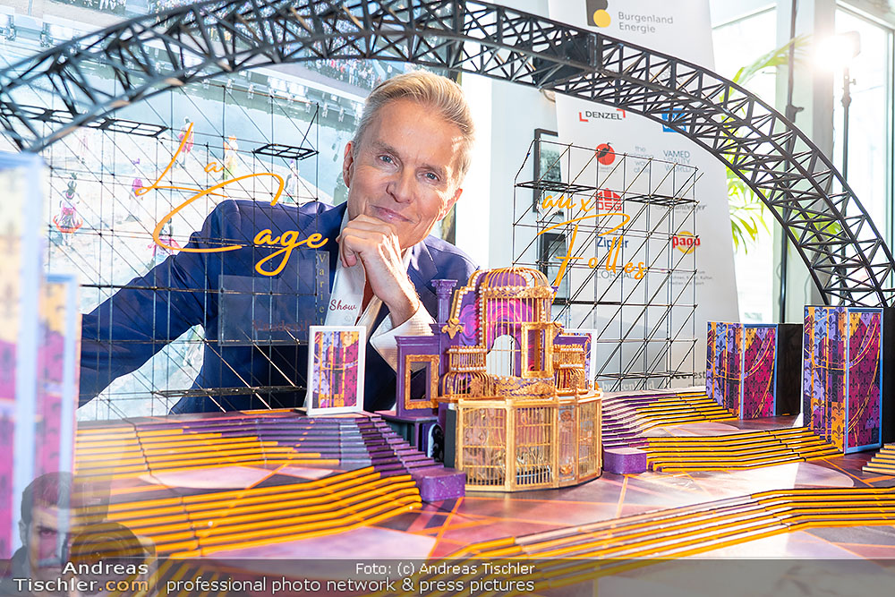 Alfons Haider präsentierte ´Ein Käfig voller Narren´ im Rahmen einer Pressekonferenz. Gezeigt wurde auch das aufwendige Bühnenbild, mit dabei waren u.a. auch Landeshauptmann Hans-Peter Doskozil sowie zwei Darstellerinnen.