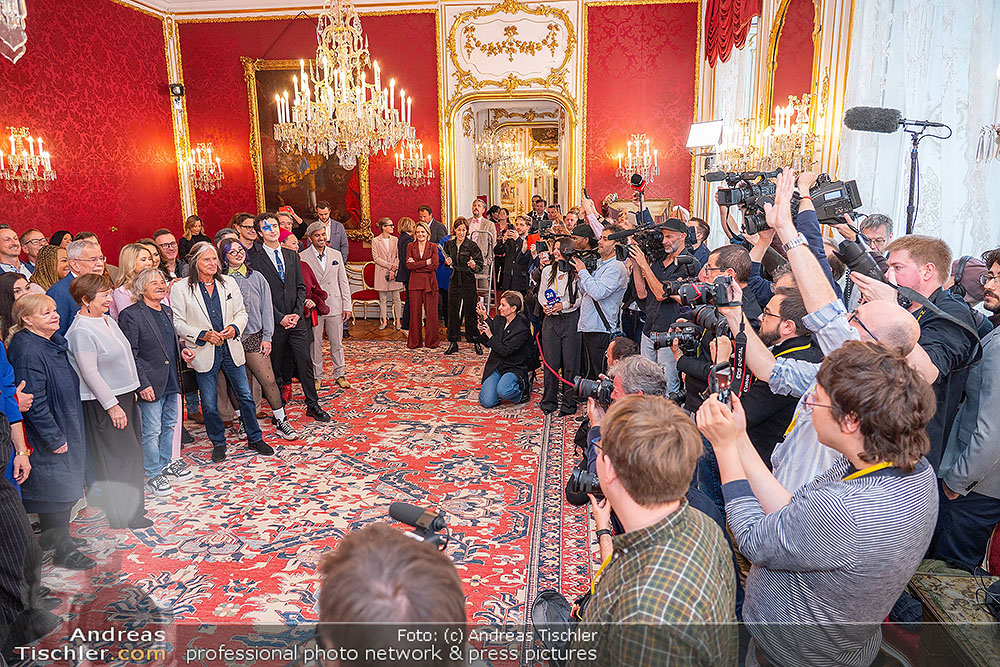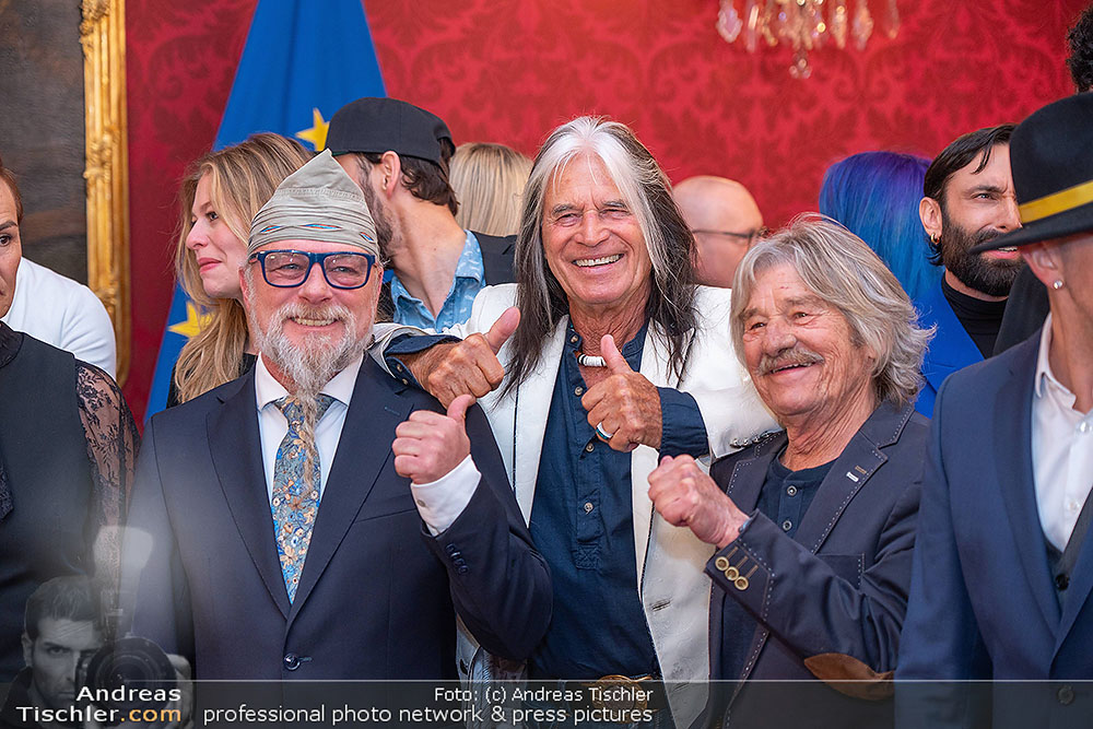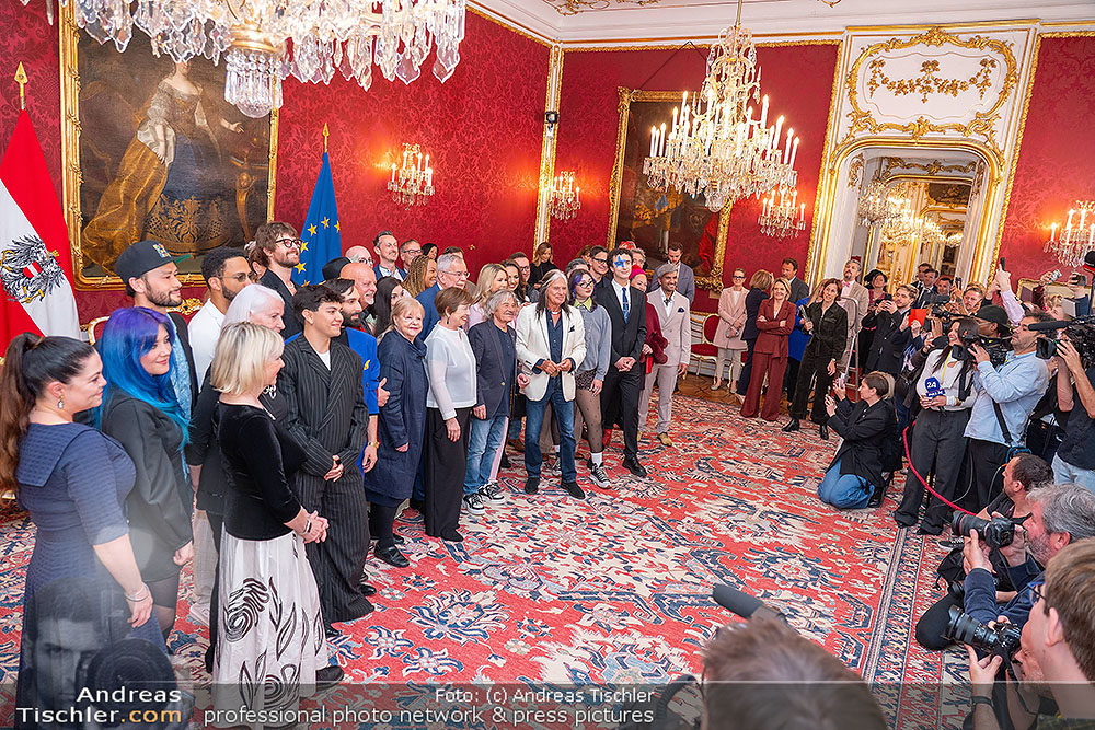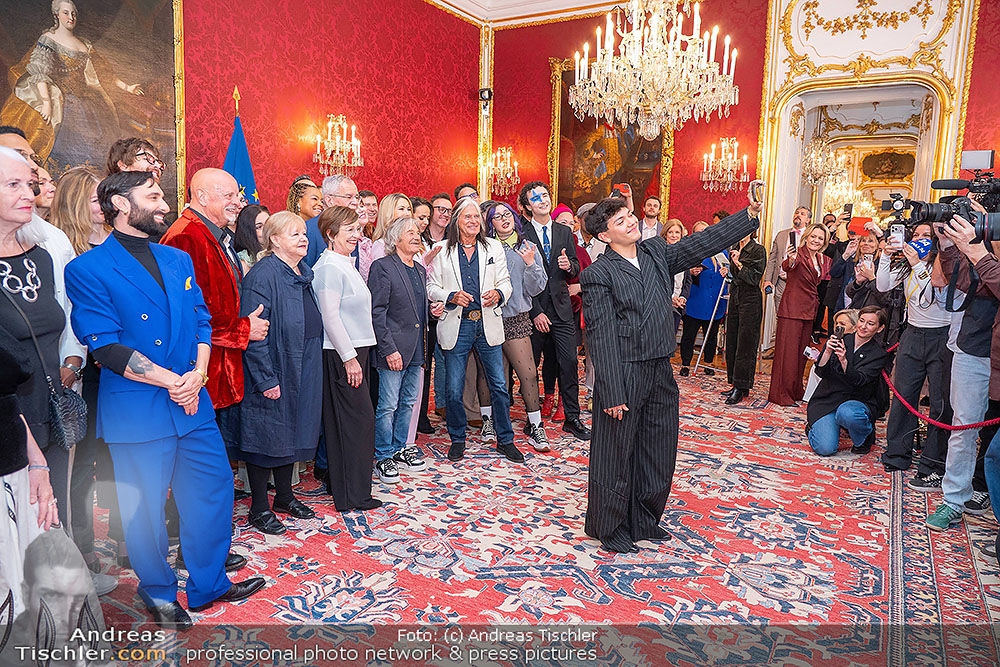Bundespräsident Alexander van der Bellen empfing anlässlich des in Kürze stattfindenden Eurovision Song Contests in Wien zahlreiche bisherige ESC-Teilnehmer Österreichs in seinen Räumlichkeiten, von Cosmo bis Conchita, von Thomas Forstner bis Erich Papilaya und von Anita bis Lizzy Engstler.